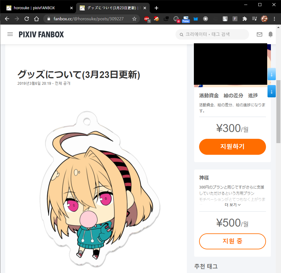 마음에 드는 일러스트레이터의 fanbox를 결제하신 후